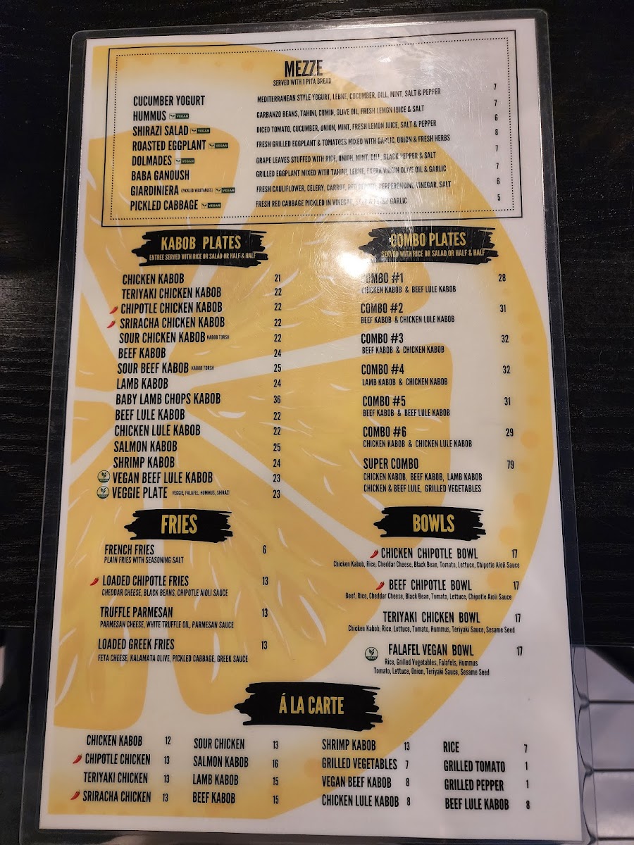 Introducing the menu at Lemón Zëst, a vibrant Mediterranean restaurant located in Northridge, CA. Here, every dish is a feast for the senses, showcasing the rich flavors of Mediterranean cuisine. The menu offers a tantalizing array of options, from delightful vegan appetizers like Hummus and Dolma to hearty entrees, including the irresistible Chicken Lule Kabob and Salmon Kabob.